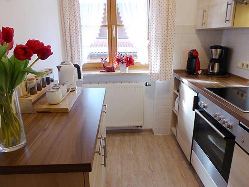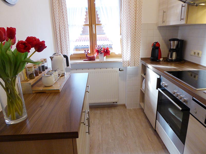 separate Küche mit Geschirrspüler, Backrohr, Ceranfeld, Kaffeemaschine, Wasser-, Eierkocher, Toaster, Mikrowelle,